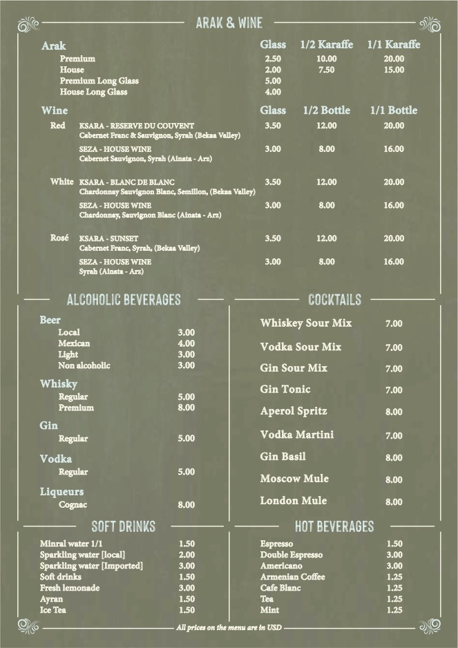 Welcome to Seza - Bistro Arménien, a charming eatery nestled in the picturesque Mar Mikhael neighborhood of Beirut. This vibrant bistro expertly blends Lebanese and Armenian cuisines, creating a culinary experience that tantalizes the palate. With its beautifully soft-lit patio and cozy indoor dining, Seza offers a warm ambiance perfect for any occasion.